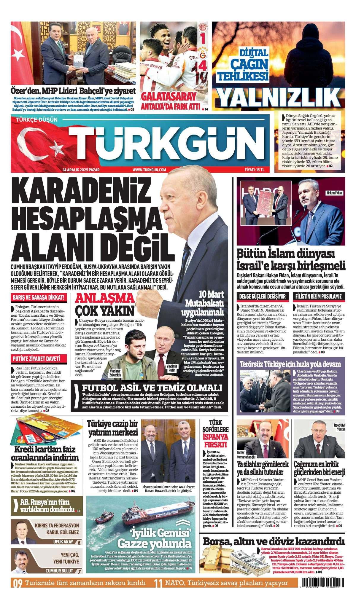 Türkgün Gazetesi 15 Aralık 2025 Günü Gazete Manşetleri